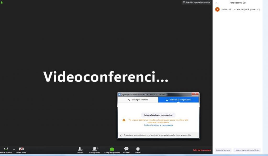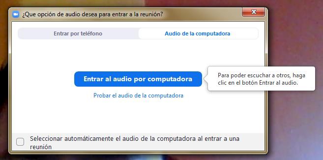Para que pueda escuchar la reunión y participar mediante voz, es necesario dar clic al botón: